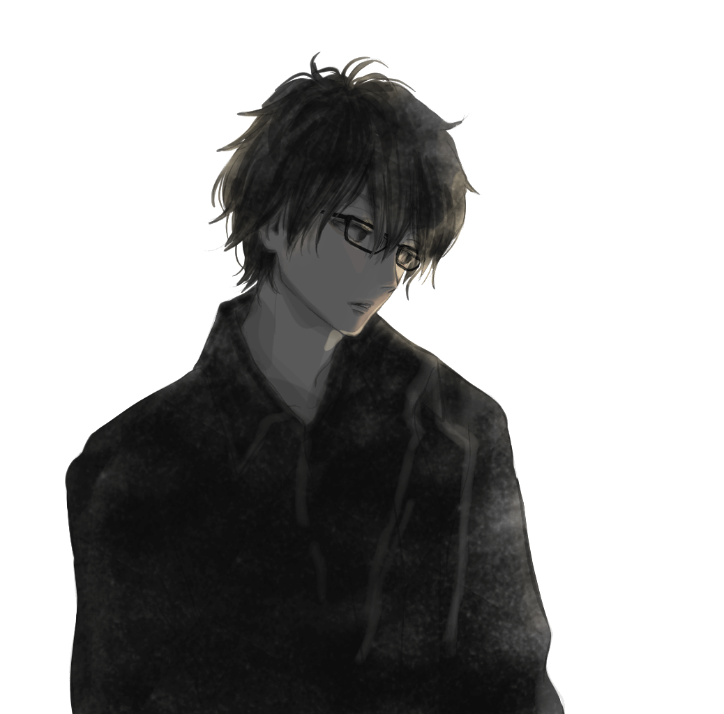 ちょっと暗めの男性イラスト4枚です。メガネ有り無し、背景有り無しがあります。