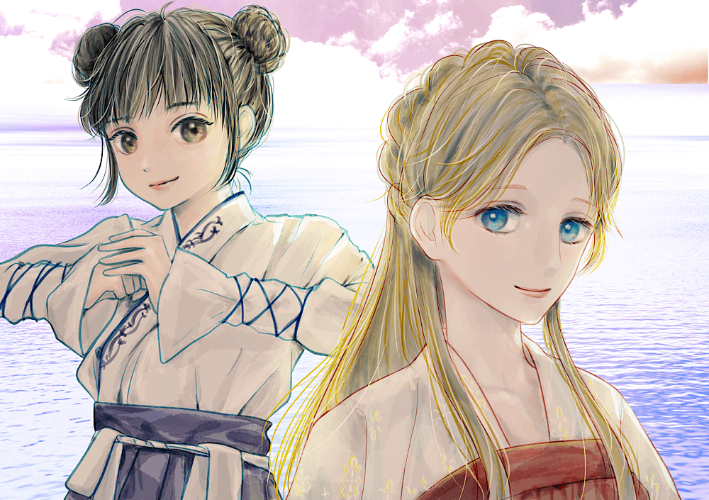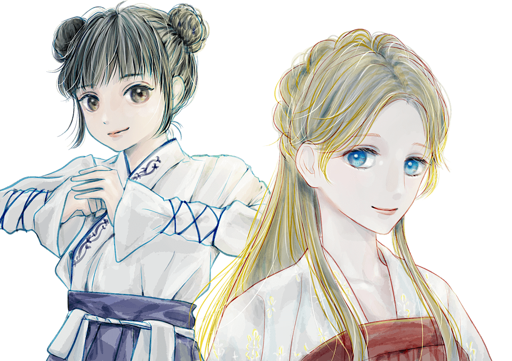 漢服の女の子2名のイラストです。背景無しは透過になっています。