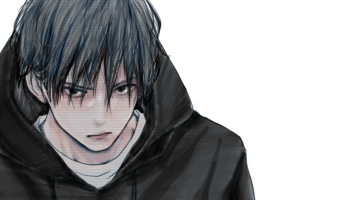 にらんでいるような男性のイラストです。
