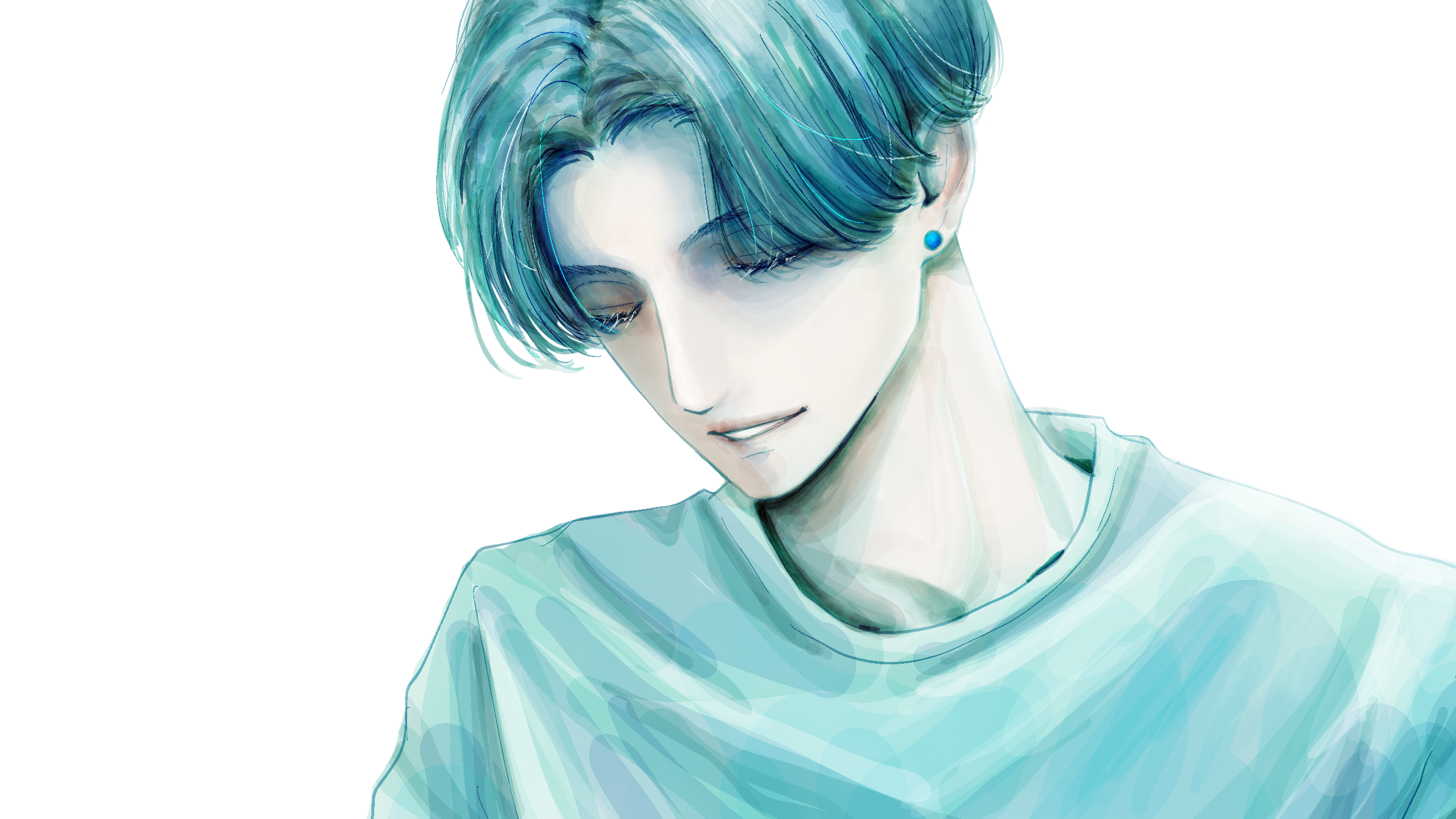 緑系の真ん中分け男性のイラストです。